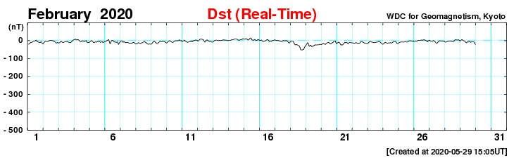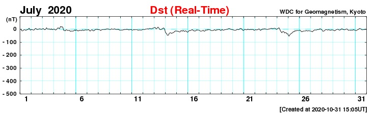 反映地磁暴发生动态的实时Dst指数 数据来源:World Data Center for Geomagnetism